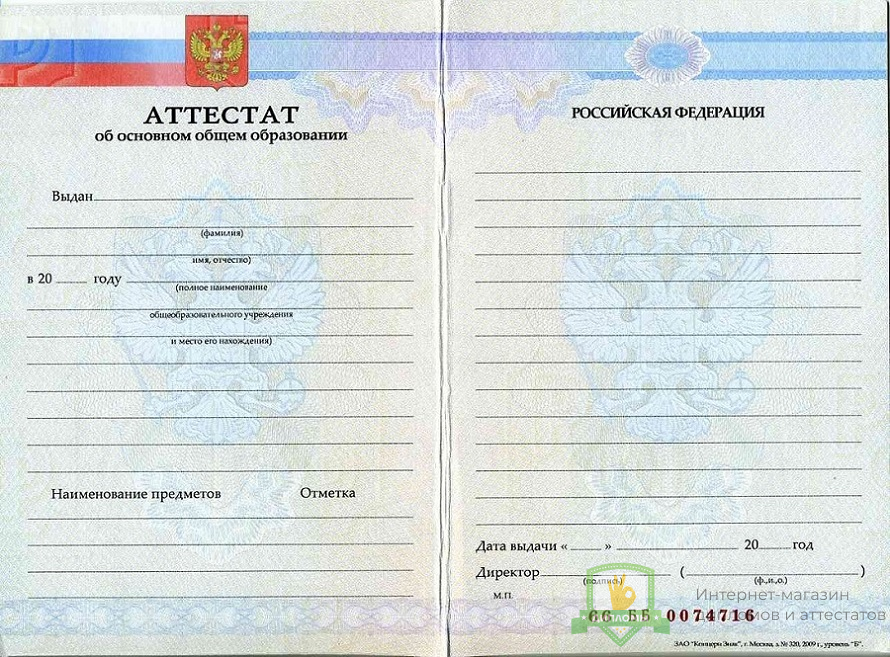 Клиентам предлагаем комфортные и выгодные условия покупки аттестатов за 9 класс 2007 - 2009 год: