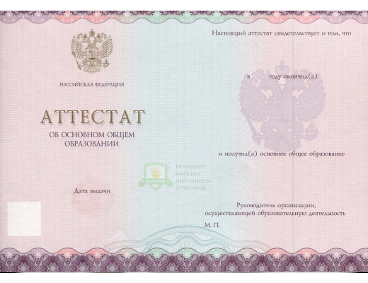 Прибрести аттестат за 9 класс 2021 - 2026 год Новый Образец вы можете в компании «ОК-Дипломы». Работаем на профильном рынке более 20 лет, предлагая клиентам высококачественный сервис и разумные цены. У нас аттестат за 9 класс 2021 - 2026 год Новый Образец выполняется на оригинальном бланке Гознак, дополняется подлинными подписями и печатями.