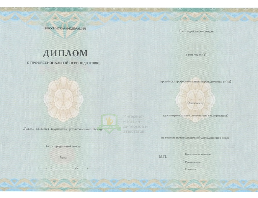 Если вы планируете купить диплом о профессиональной переподготовке 2013 - 2015 год, не сомневайтесь – получаете подлинный документ, который заполняют профессионалы, имеющие многолетний опыт работы в сфере образования. Документ на 100% соответствует всем требованиями Министерства науки Российской Федерации.
