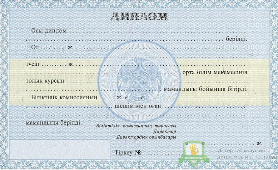 Прибрести диплом ПТУ / училища Казахстана 2000 - 2026 год вы можете в компании «ОК-Дипломы». Работаем на профильном рынке более 20 лет, предлагая клиентам высококачественный сервис и разумные цены. У нас диплом ПТУ / училища Казахстана 2000 - 2026 год выполняется на оригинальном бланке Гознак, дополняется подлинными подписями и печатями.