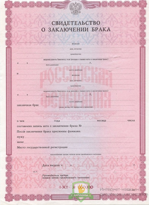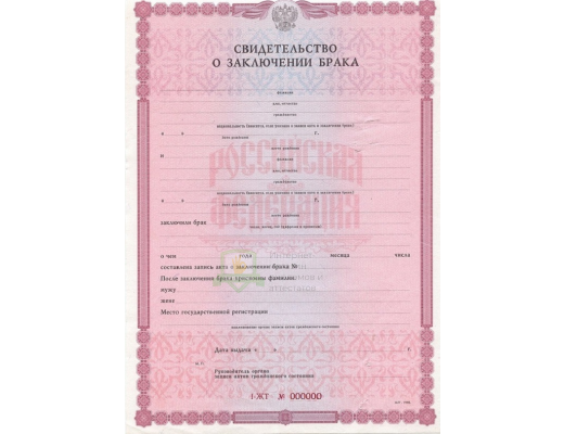 Купить свидетельство о заключении брака 1998 - 2018 год